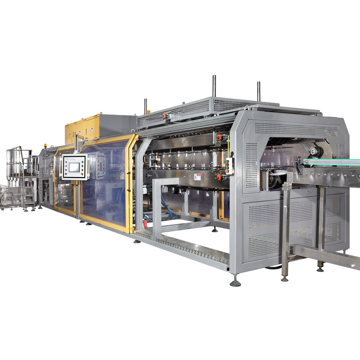 隆寶后包設(shè)備主要分為紙膜包、碼卸垛、裝卸箱三大系列。每個系涵蓋多種產(chǎn)品,廣泛的應(yīng)用于飲料、食品、化工、醫(yī)療等行業(yè)。對各類瓶罐及桶裝水可進(jìn)行二次包裝,并可與自動灌裝生產(chǎn)線配套使用。包裝產(chǎn)品具有自動化程度高、控制可靠、調(diào)整簡單、操作維修方便等優(yōu)點。