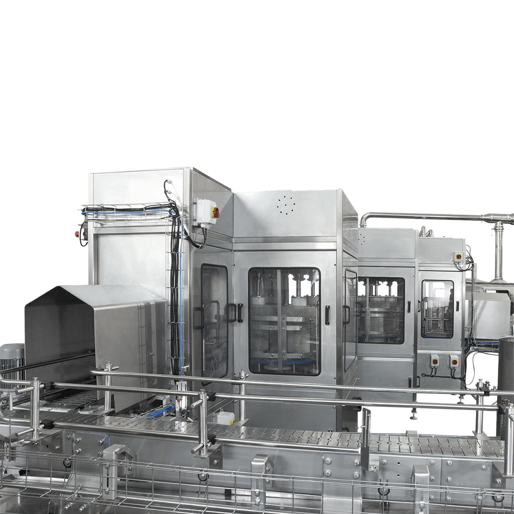 DGER系列旋轉(zhuǎn)外洗機是以旋轉(zhuǎn)結(jié)構(gòu)為基礎(chǔ)的桶裝水外表面清洗設(shè)備。清洗時,瓶子在外洗機內(nèi)進行公轉(zhuǎn)與自轉(zhuǎn),并通過中心毛刷、邊毛刷與底毛刷所組成的立體洗刷系統(tǒng)對整個瓶子外表面進行360°全方位洗刷。洗刷后通過網(wǎng)狀噴淋隧道進行二次噴淋清洗。通過兩種工藝的清洗徹底洗凈瓶子外壁。